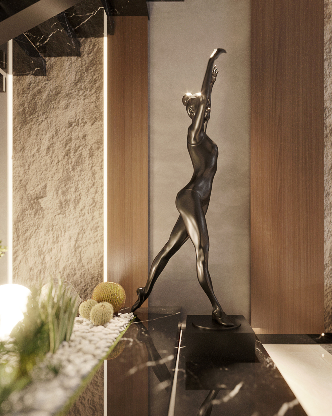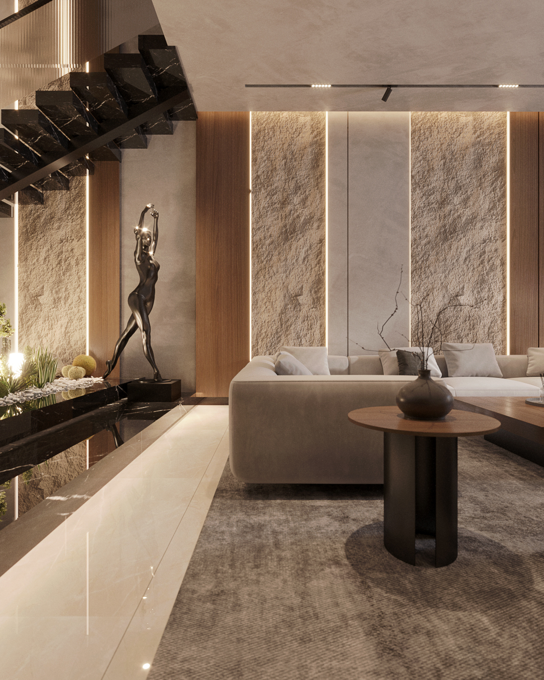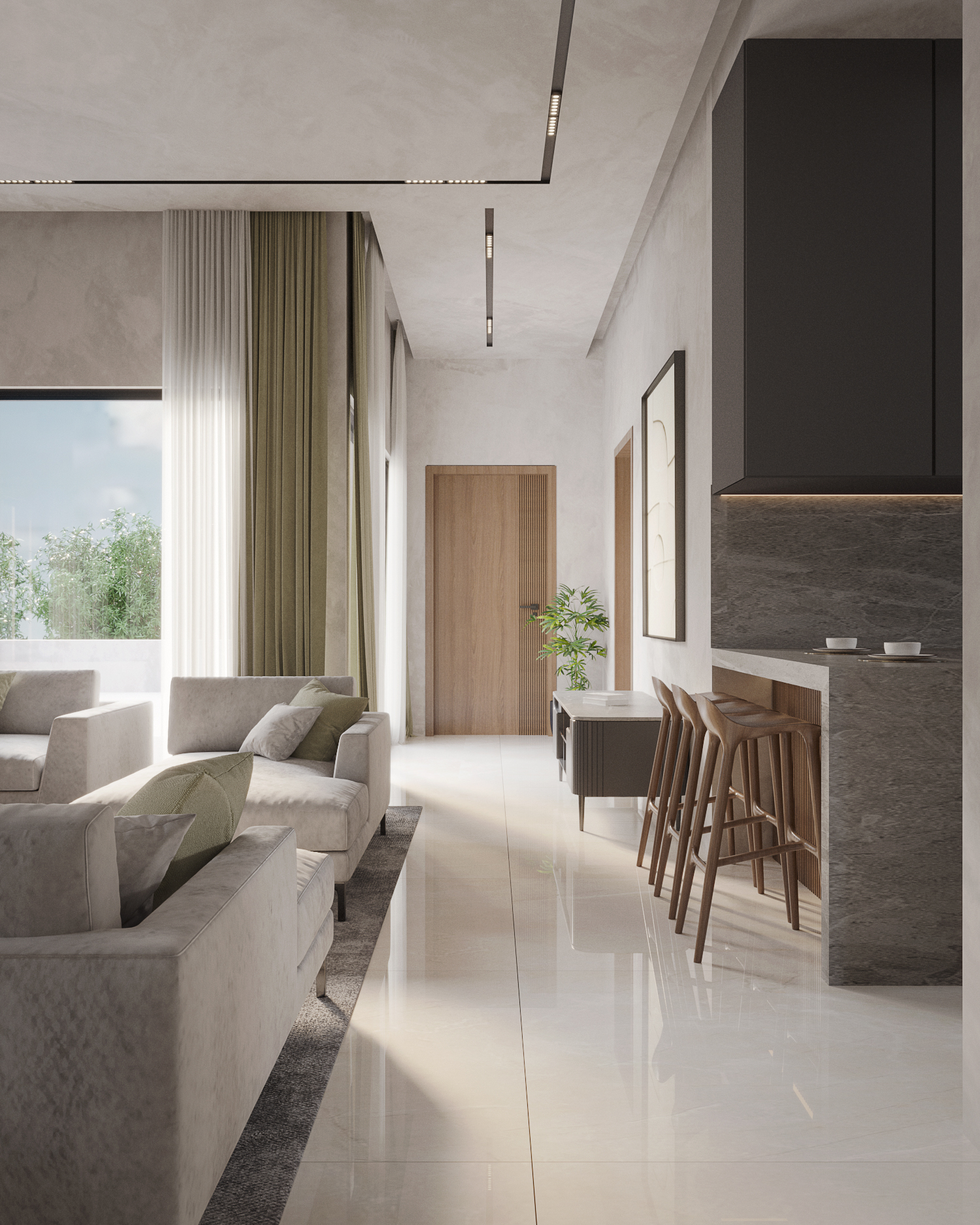 This residence is a contemporary interpretation of neo-classical architecture, designed to embody timeless proportion with a minimalist modern vocabulary. The architectural language is defined by strong vertical proportions, symmetrical massing, and a disciplined use of material and form.